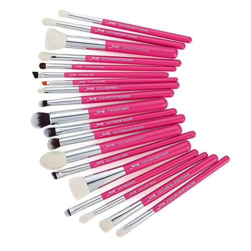 Jessup Set di pennelli 20 Pennelli per il trucco per fondotinta Sfumature Correttore Ombretto Occhi Labbro in fibra sintetica Manico in legno Rosa Carminio Argento T205