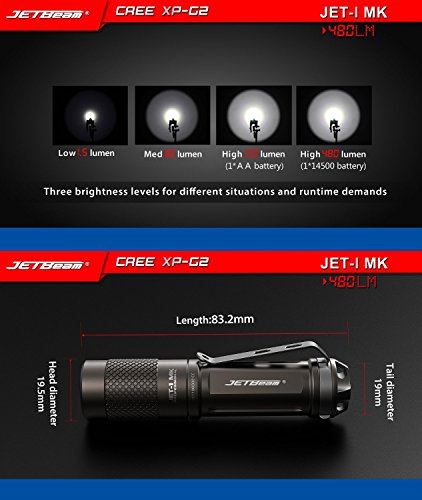 JETBeam, torcia a batteria AA JET-I MK (1MK) per uso quotidiano, impermeabile, LED Cree XP-G2, 480 lumen
