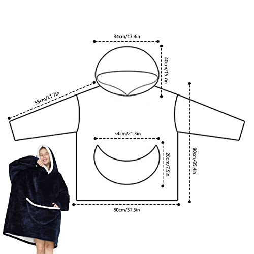 Jetcloud Felpa Coperta Gigante Confortevole Hoodie Coperta con Cappuccio Pullover Blanket Oversize Taglia Unica TV Sweatshirt Coperta in Flanella Morbido per Adulti, Uomini, Ragazzi (Blu)