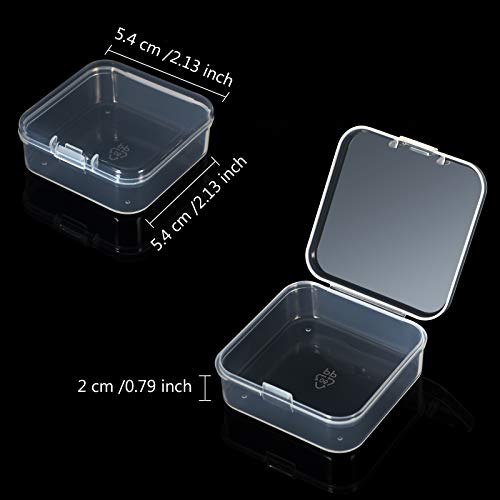Dimensione del contenitore: ogni mini scatola di plastica trasparente per immagazzinaggio è di ca. 8,3 x 5,4 x 2,6 cm/ La dimensione della scatola di immagazzinaggio è 5,4 x 5,4 x 2 cm/ 2,13 x 2,13 x 0,79 pollici (LWH) con 1 mm di spessore, la scatola in plastica con coperchio incernierato è leggero, resistente e facile da trasportare