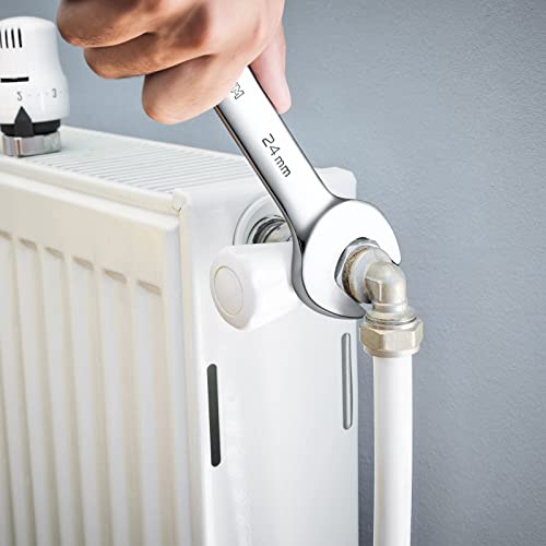 Jetech 24 mm Chiave combinata a cricchetto da, in acciaio Cr-V di grado industriale, con finitura cromata lucida