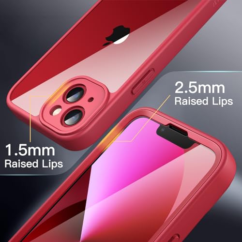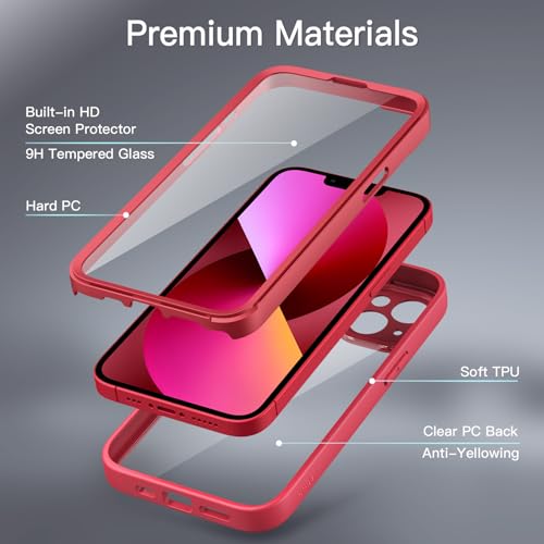 JETech Cover per iPhone 13 6,1 Pollici con Integrato Vetro Temperato Pellicola Protettiva, 360 Gradi Corpo Pieno Resistente Protezione, Antiurto Robusta Cellulare Custodia (Rosso)