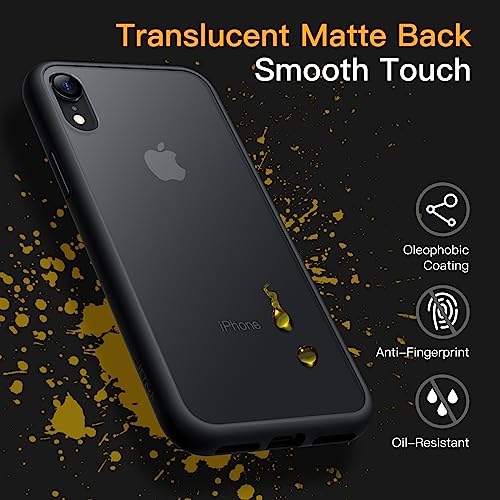 JETech Cover Opaca per iPhone XR 6,1 Pollici, Protezione Anticaduta Antiurto di Grado Militare, Custodia Posteriore Glassata Traslucida, Anti-Impronte (Nero)