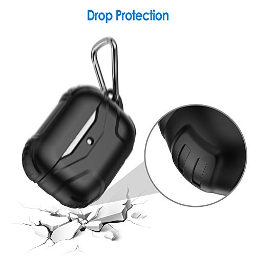 JETech Custodia Compatibile con AirPods Pro (2019), Pelle Protettiva Antiurto in Silicone (LED Anteriore Visibile) con Portachiavi, Nero