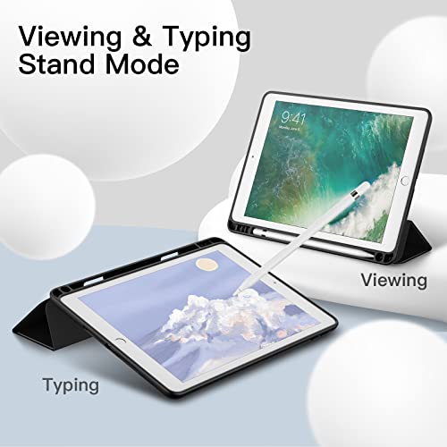 JETech Custodia per iPad 9,7 Pollici (6a/5a Generazione, 2018/2017) con Portapenne, Cover Tablet Sottile con Retro in Morbido TPU con Auto Svegliati/Sonno (Nero)