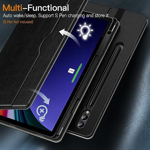 JETech Custodia per Samsung Galaxy Tab S9 Plus 12,4 Pollici con S Pen Holder, PU Affari In Pelle Foglio Supporto Protettiva Tablet Cover, Auto Svegliati/Sonno, Multi-Angolo Visualizzazione (Nero)