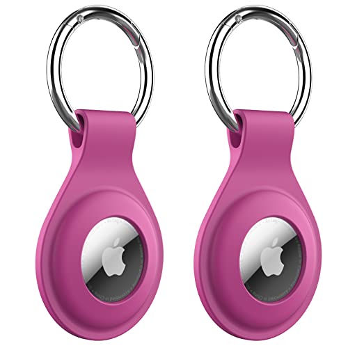 JETech Silicone Custodia per AirTag 2021 con Portachiavi, Cover Air Tag Protettiva Portatile, Installazione Facile, Pacco da 2 (Dragon Fruit)