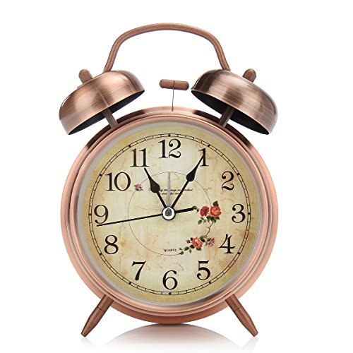 Jeteven Silent Twin Bell Alarm Clock Orologio al Quarzo Analogico da Comodino con Luce Notturna Non-Ticking