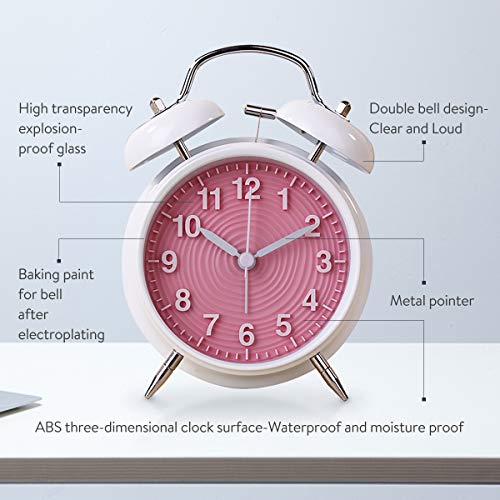 Jeteven Sveglia Doppia Campana con Luz Sveglia Campanella in Metallo Retro Style Silence (Bianco+Polvere)