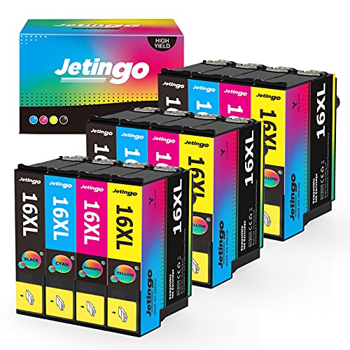 Jetingo Cartuccia d'inchiostro 16XL compatibile per Epson WF-2750DWF, WF-2760DWF, WF-2660DWF, WF-2650DWF, WF-2630WF, WF-2540WF, WF-2530WF, WF-2520NF, WF-2510FN, WF-2010W (confezione da 12)