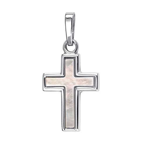 JEVELION Ciondolo a forma di croce per donne e bambini, lucido, con inserto in madreperla, in argento Sterling 925, con custodia per gioielli, Croce in argento 925 senza catena,