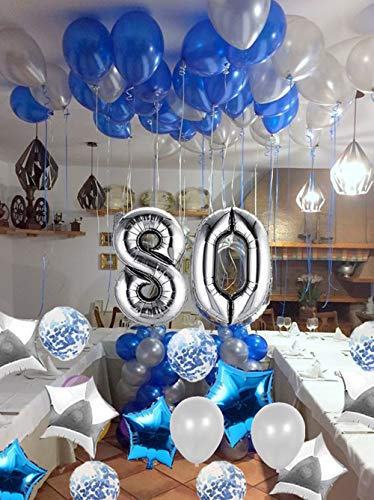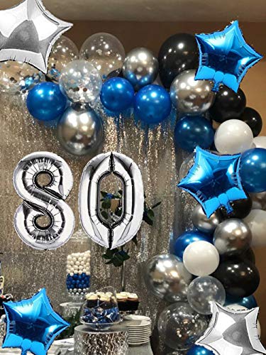 JeVenis Argento Blu 80 ° Compleanno Decorazioni Forniture per Feste 80 Palloncini Compleanno Buon Compleanno Palloncino Banner 80 Decorazioni di Compleanno