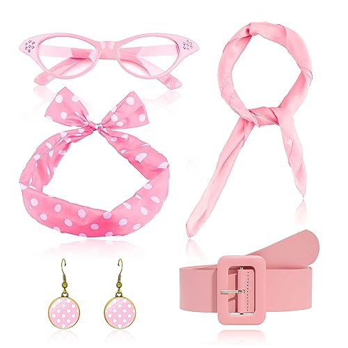JeVenis costume da donna rosa accessori anni '50 vestito anni '50 accessori costume anni '50 sciarpa occhiali cat eye cintura bandana