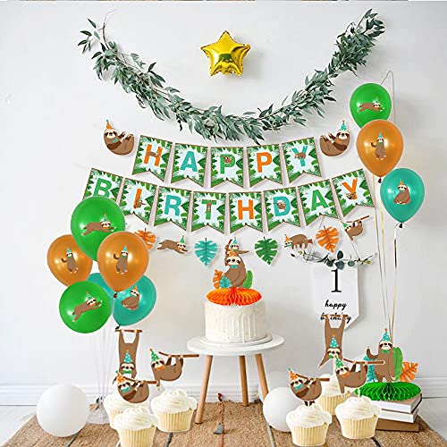 JeVenis 34 PCS Decorazione di compleanno di bradipo Palloncino di compleanno di bradipo Decorazione di torta di compleanno di bradipo Decorazione per cupcake di bradipo Banner di bradipo