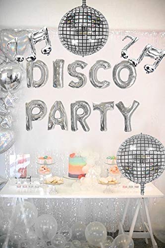 Il pacchetto include: 1 palloncino "DISCO PARTY" da 16 pollici, 2 palloncini da discoteca, 2 palloncini da note musicali.