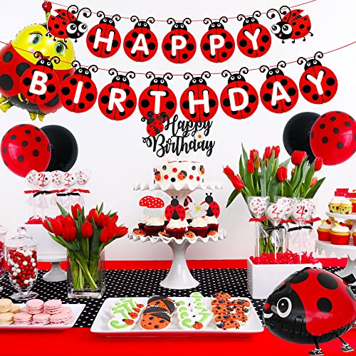 JeVenis 57 pezzi Decorazione per torta di compleanno con coccinella Banner di compleanno con coccinella Decorazione per cupcake con coccinella