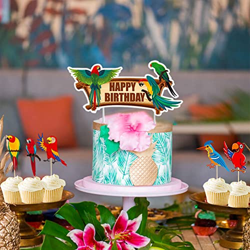 JeVenis 13 pezzi Decorazione per torta di compleanno con pappagalli Decorazione per cupcake con uccelli tropicali Forniture per feste con pappagalli Decorazione per feste con pappagalli tropicali