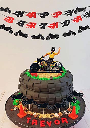 Motorcycle Cake Topper: il pacchetto include 1 x Motorcycle Cake Topper, 6 x Motorcycle Cupcake Topper. 1x striscione di compleanno, 1 ghirlanda.