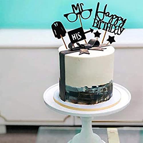 Decorazione per torta di buon compleanno: la confezione include: 1 decorazione per torta, 2 decorazioni a stelle nere, 1 topper per torta "His", 1 topper per torta "Mr", 1 decorazione per torta di buon compleanno.
