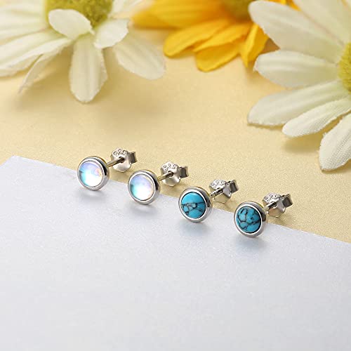 JeweBella 4MM/6MM Orecchini 925 Argento Sterling Cartilagine per Donne Ragazze Orecchini Pietra di Luna Turchesi Piccoli Ipoallergenico Orecchini