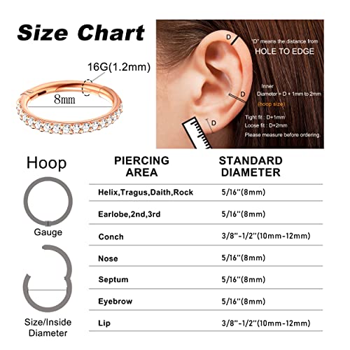 PIERCING HELIX MULTIFUNZIONALE Spessore anello naso: 18G (spessore: 1,0 mm)/16G (spessore: 1,2 mm), diametro interno: 8 mm/10 mm, pavimentazione 5A+CZ. Ottimi per donne e ragazze, i cerchi a scatto incernierati sono perfetti per piercing a conchiglia, piercing all'elica, piercing alla pancia, cerchi per orecchini alla cartilagine, cerchi per piercing al trago, piercing daith, piercing al naso e altro ancora.