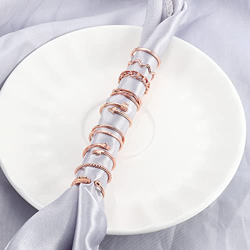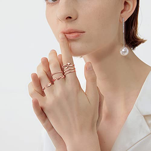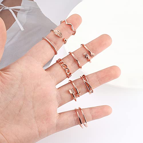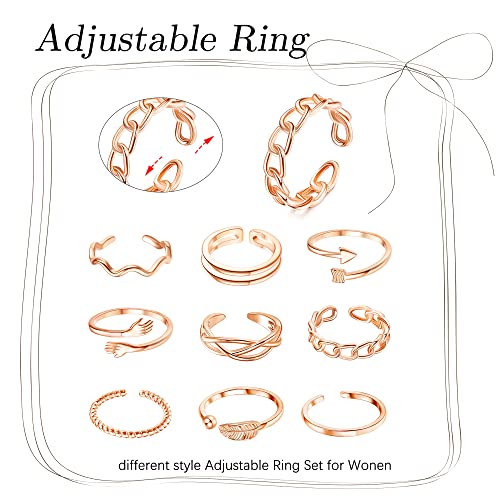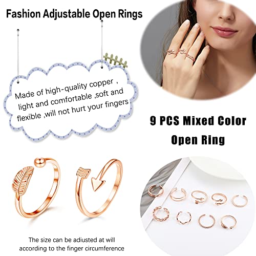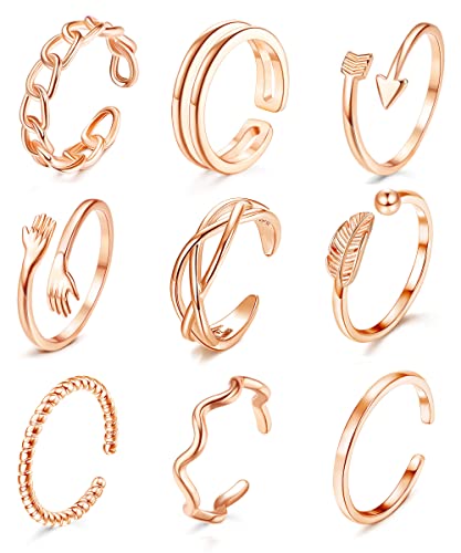 JeweBella 9PCS Anelli Donna Argento Anelli Aperti Set Anelli Donna Regolabili Anello Onda Piuma Abbraccia Anelli Pollice Impilabile Knuckle Toe Anelli Oro Rosa/Oro Spiaggia Gioielli per Donna Ragazze