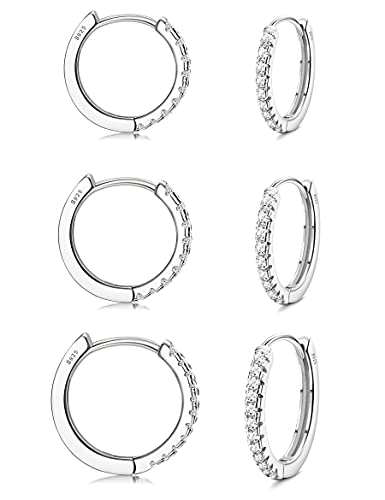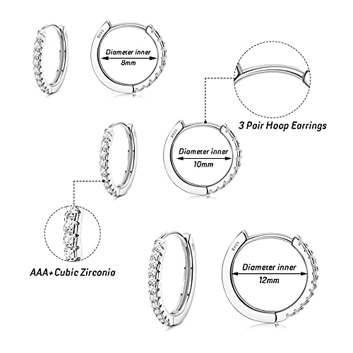 JeweBella 3 Paia Orecchini Donna Argento 925, Orecchini Cerchio Argento/Oro, Orecchini Donna Cerchio Piccoli 8MM/10MM/12MM