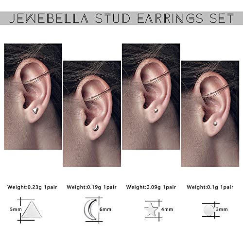 Orecchini a perno in argento. Dimensioni: 4 mm, peso: 0,1 g. Dimensioni degli orecchini a perno a stella: 4 mm, peso: 0,09 g. Dimensioni degli orecchini a sfera: 4 mm, peso: 0,4 g. Orecchini a perno con zirconia cubica: 4 mm, peso: 0,5 g. Dimensioni degli orecchini triangolari: 5 mm, peso: 0,23 g. Dimensioni degli orecchini a perno a luna: 6 mm, peso: 0,19 g. Questi piccoli orecchini in argento possono essere utilizzati anche come orecchini a forma di cartilagine, orecchini a forma di elica, ecc