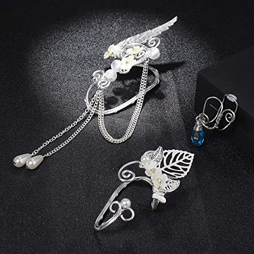 【Materiale di Alta Qualità】I polsini ear cuff elfo sono realizzati con fiori di metallo di alta qualità, perle di perle, rispettosi dell'ambiente, nessun danno alla pelle, non arrugginiscono mai. È di dimensioni libere e morbido per la regolazione, puoi regolarlo facilmente semplicemente tirando o piegando delicatamente i polsini dell'orecchio elfo per adattarsi alla forma delle tue orecchie senza alcun male