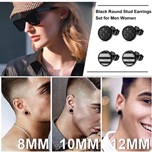 JeweBella 5 Paia Orecchini Uomo Acciaio Inossidabile Rotondo Nero Cartilagine Piercing Orecchini per Donna Uomo Ipoallergenico Orecchini Set Gioielli 8/10/12 MM