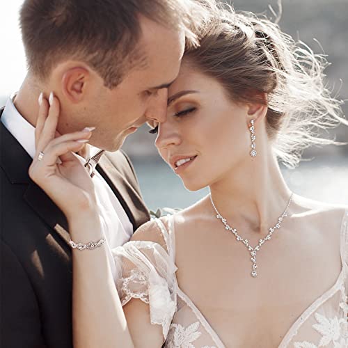 Parure Gioielli Sposa per Donna Un ordine otterrai una collana sposa brillante, un paio di orecchini pendenti, un braccialetto lucido e un anello con zirconi cubici.Il design alla moda del ritaglio, scintillante, il set di gioielli da sposa ha una brillantezza estrema, elegante e imponente, mostra Ti distingui, il miglior regalo per la futura sposa o la damigella d'onore