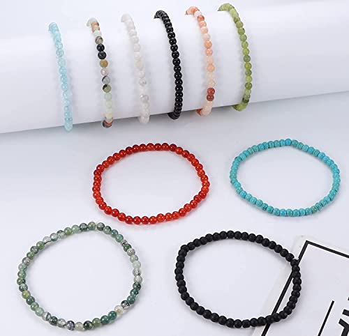 Set di Pietre Naturali Bracciale Donna -Un ordine contiene 10 diversi braccialetti di perline di pietra, tra cui braccialetto di agata rossa, braccialetto di zebra rosa, braccialetto di agata nera, braccialetto di avventurina verde, braccialetto turchese, braccialetto di agata blu e così via.fornire una varietà di stili per scegliere e vestito per l'abbigliamento quotidiano.