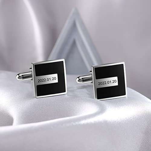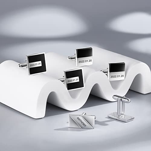 Jeweidea Gemelli da uomo personalizzati con nome inciso data gemelli, 1 paio di gemelli per camicia, regalo per marito, papà, sposo, festa del papà, matrimonio, laurea, lavoro (stile 2)