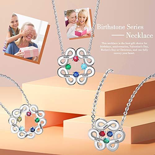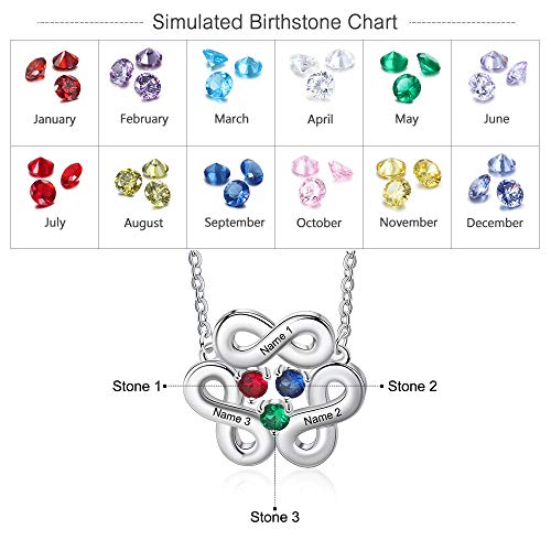 Jewel Collana Infinito Personalizzata Collana con Pendente in Argento con 3 Nomi Simulata Birthstone Incisione Madre Figlia Regalo per la Festa della Mamma San Valentino