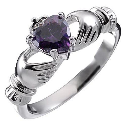 GWG Jewellery Anello Argento Sterling Claddagh con Cuore in Purpureo Ametista, Mani e Corona - 8 in Confezione Regalo per Donne