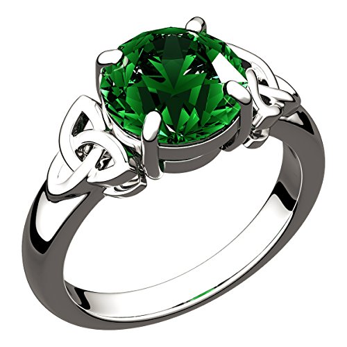 GWG Jewellery Anello Argento Sterling Grande Pietra in Verde Smeraldo Affiancata da Nodi Celtici - 6 in Confezione Regalo per Donne