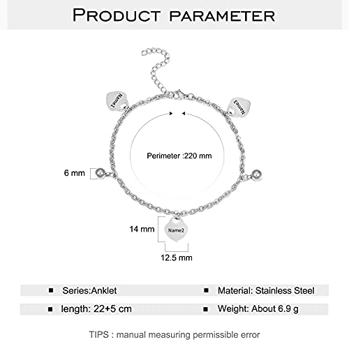 Jewelora ciondolo in argento personalizzato da donna con incisione a cavigliera con 3 nomi, catena regolabile, bracciale con cavigliera a cuore, regalo per ragazze, sorella BBF, festa della mamma (#3)