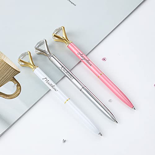 Jewelora Penna a sfera personalizzata Confezione regalo con diamante Nome inciso personalizzato Forniture scolastiche per ufficio Regalo per donne Ragazze Studente Personale Compleanno (White)