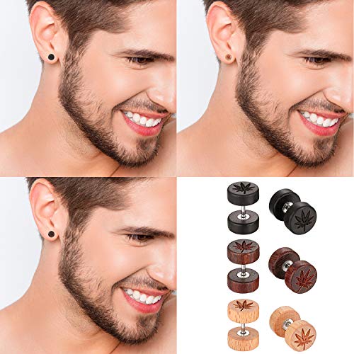 JewelryWe 10mm Orecchini da Unisex in Legno,Orecchini Tappi Orecchini Rotondi,Stile Albero di cocco, Colore Scelta