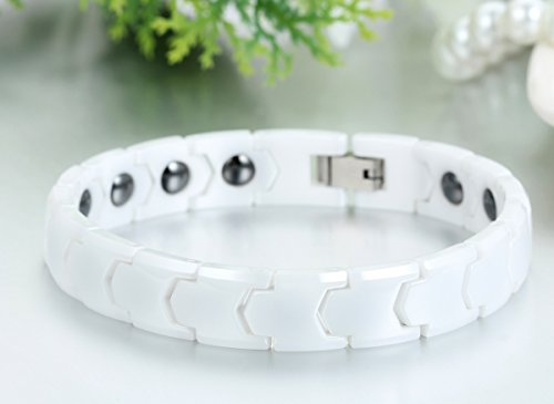 JewelryWe Braccialetto Uomo Polso Polsino Lucido Salute Ceramica Catena di Mano Larghezza 11 mm Fantasia Colore Nero Bianco
