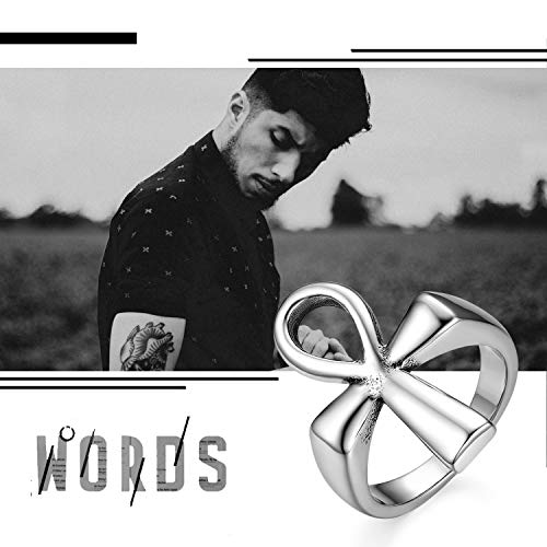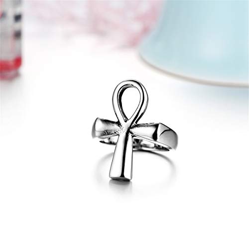 JewelryWe Set Collana Anello Grande da Donna Uomo,Egyptian Ankh Croce,Acciaio Inossidabile, colore Argento(con Sacchetto Regalo) Misura 12-22, Anello Personalizzato