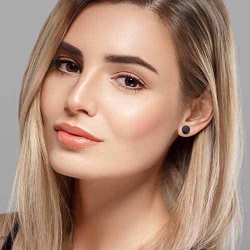 Jewelrywe Gioielli 10mm Orecchini Calamita Non Piercing Orecchini Neri Piccoli, Rotonda Fissa gli Orecchini Hip Hop unisex
