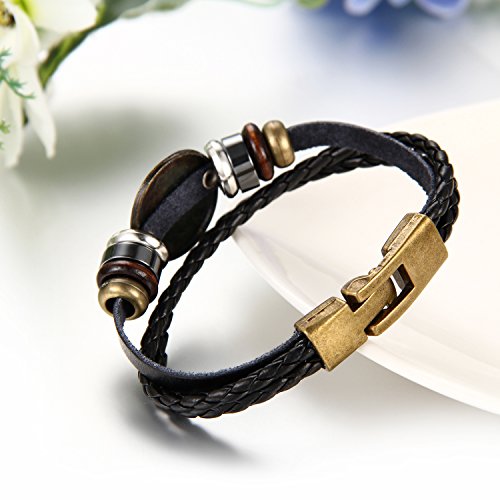 JewelryWe Gioielli Bracciale da Uomo Donna, Braccialetto in Pelle Intrecciato Beads Retro Vintage, Zodiaco 12 Costellazioni Nero Bronzo, 21cm Regalo di Amicizia/Birthday