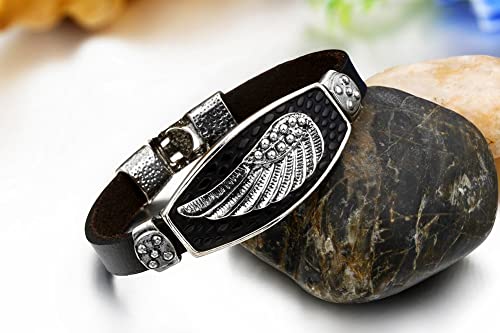 JewelryWe Gioielli bracciale da uomo donna retro Angelo ali Cool pelle braccialetto