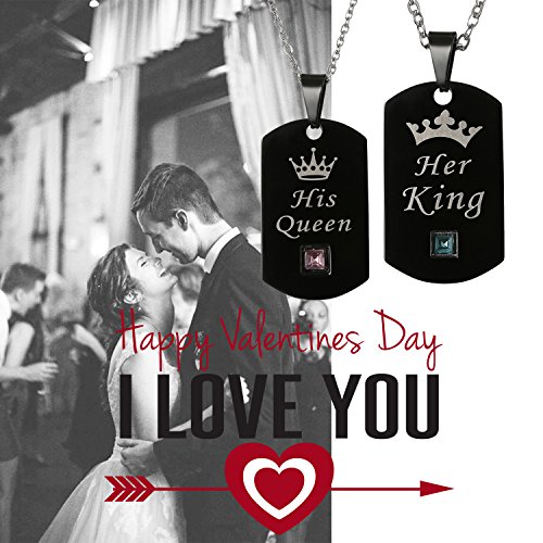 JewelryWe Gioielli Collana Amanti Fidanzati, da Donna Uomo in Acciaio Inossidabile con Strass, His Queen Her King, Gioielli Personalizzato Bracciale Set
