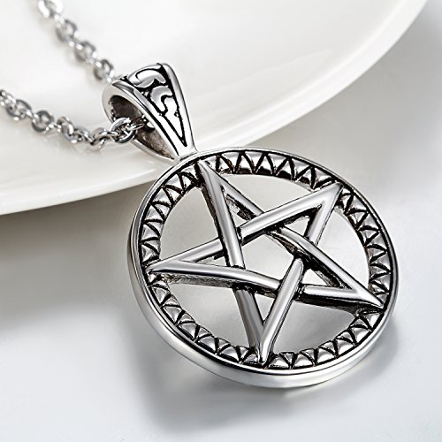 JewelryWe Gioielli Collana Uomo Acciaio Inox, Ciondolo Stella Blu Pentagram Pentacolo, Biker Catena 55cm Cool regalo di Natale (Argento)