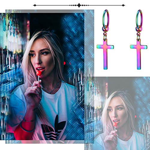 JewelryWe Gioielli Orecchini con Pendente Croce, Orecchini Uomo Donna, in Acciaio Inossidabile Lucido, 4 colori da scegliere, Orecchini Hip Hop Punk Regalo