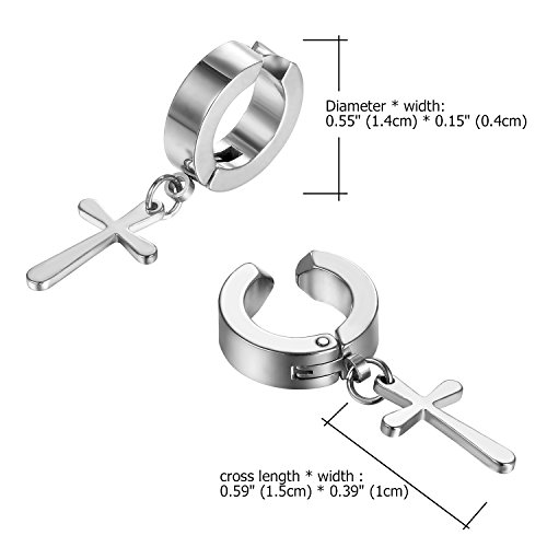 JewelryWe Gioielli Orecchini da Uomo Donna Unisex in Acciaio inossidabile con Ciondolo Croce Orecchini a Cerchio Colore Argento Oro Nero