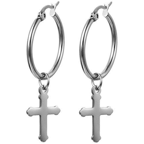 Jewelrywe Orecchini con Pendente Croce in Acciaio Inossidabile Elegante Orecchini Preghiere MultiColore