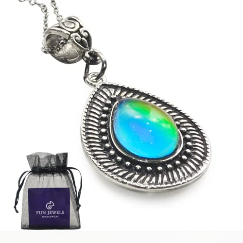 Fun Jewels - collanina vintage con pietra dell'umore ovale - catenina da 45 cm + 5 cm di estensione - forma a goccia